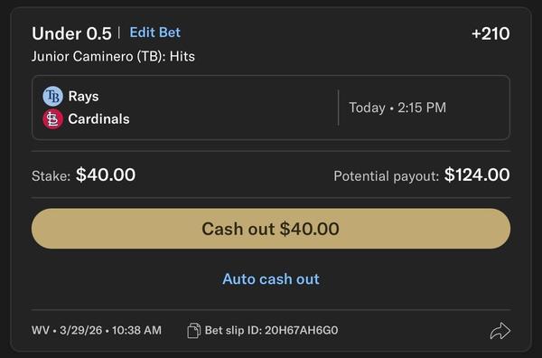 MLB Bonus Play: Caminero Under 0.5 hit